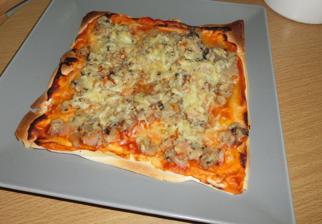 - relleno (en este caso usé las sobras del relleno de los champiñones rellenos pero puedes hacer la pizza de lo que quieras)