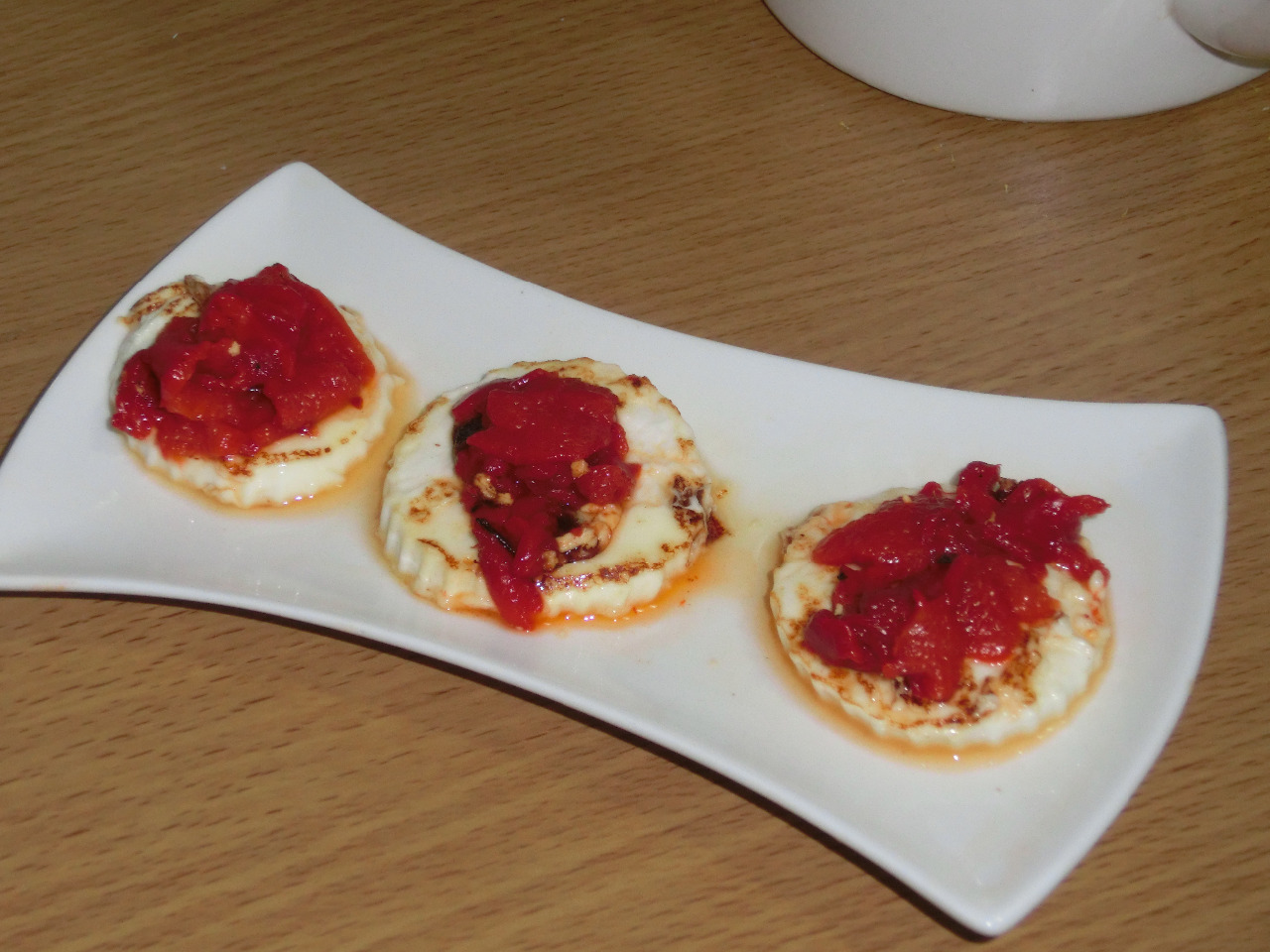Cortamos el queso en lonchas y lo ponemos en la plancha al igual que los pimientos de piquillo. cuando esté dorado lo sacamos y ponemos por encima un poco de miel y......... LISTO PARA CENAR!!!